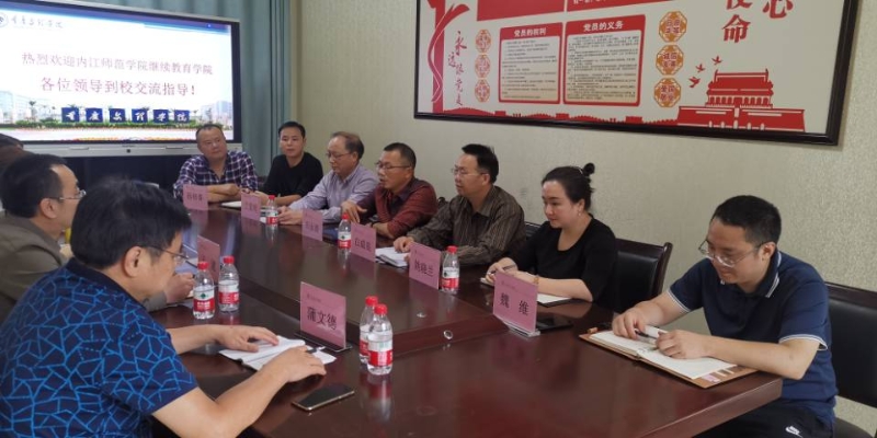 9月24日下午,内江师范学院王建副院长带领综合科、成教科、自考科、培训科等相关科室主任,到KY官网开展专题调研交流工作,田永酉院长、白成良书记及相关科室主任参加本次活动。