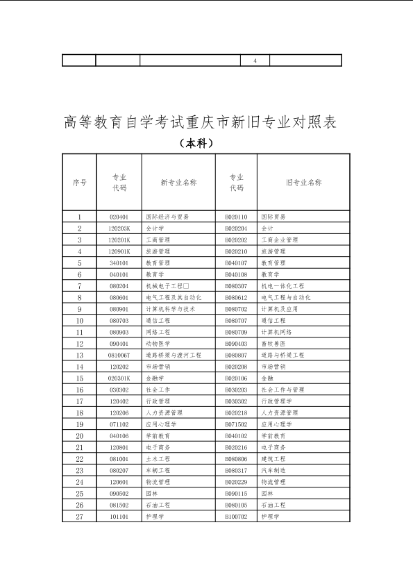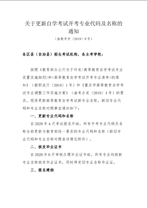 《关于更新自学考试开考专业代码及名称的通知》 (渝教考发〔2019〕9号)