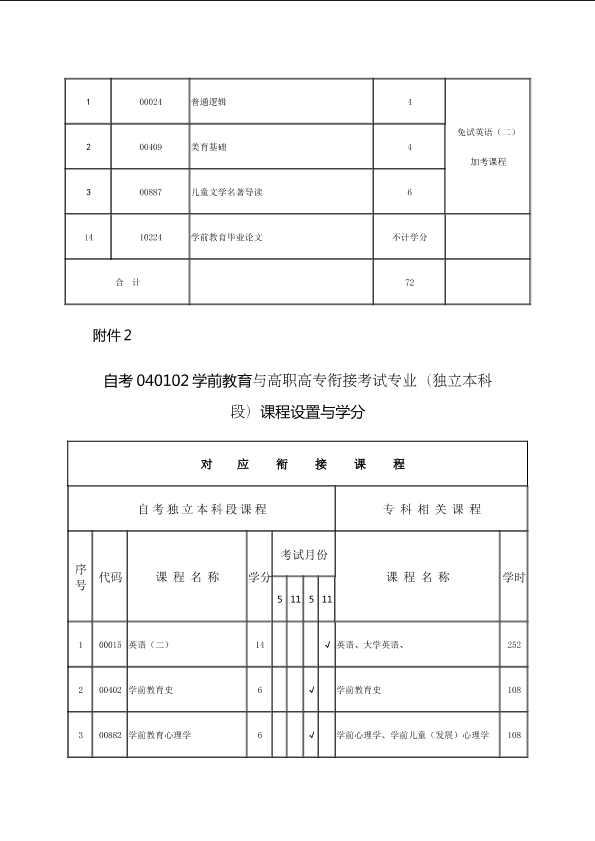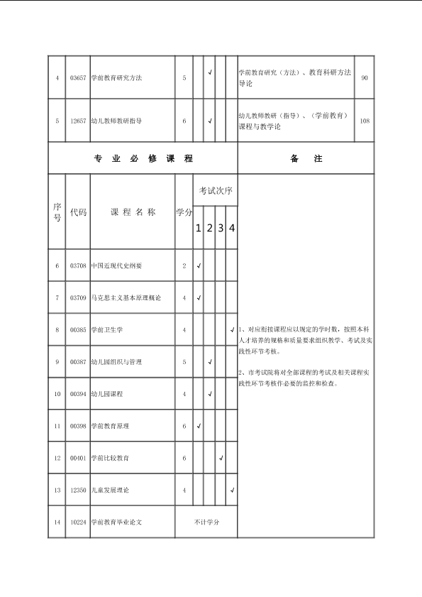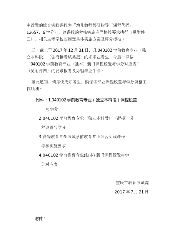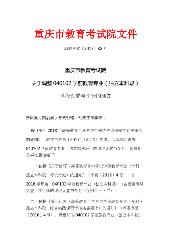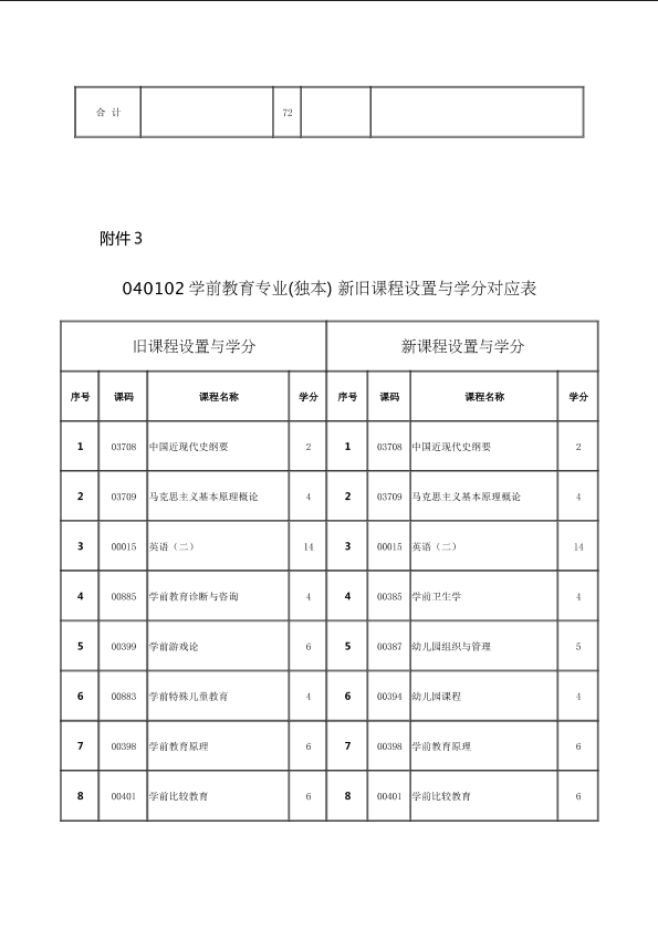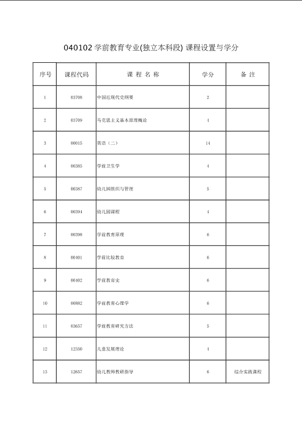 关于调整040102学前教育专业(独立本科段)课程设置与学分的通知