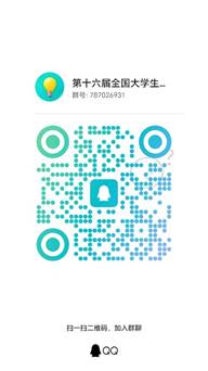 搜索QQ群号(787026931)或扫描此次大赛二维码直接加入“第十六届全国大学生电子商务“创新、创意及创业”挑战赛(校级)”。