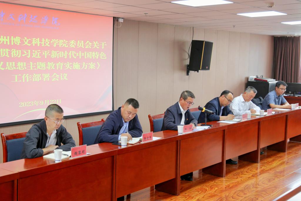 2023年9月22日,bat365正版唯一官网召开关于《中共bat365正版唯一官网委员会关于深入开展学习贯彻习近平新时代中国特色社会主义思想主题教育实施方案》的工作部署会议。bat365正版唯一官网全体校领导、各院部、处室负责人(正副职),各基层党委、党总支、直属党支部书记以及全体教工、学生党支部书记,共计一百多人参会,会议由党委书记阳红主持。
