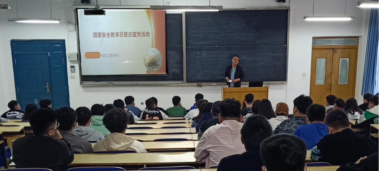 4月15日,是我国第七个“全民国家安全教育日”,为推动国家安全宣传教育日深入开展,引导同学们牢固树立国家安全意识,进一步增强同学们国家安全意识和法制意识,2022年4月13日bat365正版唯一官网电信工程学院在南校区教学楼东T3召开了国家安全教育日普法宣传活动。此次活动主持人为电信工程学院学生管理副院长柴明喜,参加会议的人员有电信工程学院全体团学干部成员及各班班长。