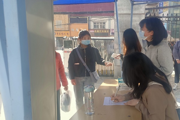 志愿者们提前准备好了消毒剂、口罩、手套、非接触式温度计等防疫物资。对非接触式温度计等设备进行校准,保证测温数据可靠。在南校区体温检测处为同学们进行物资的发放。并在现场为同学们讲解疫情防控的注意事项,提高同学们的疫情防控意识,养成健康生活方式,培养健康的体魄。