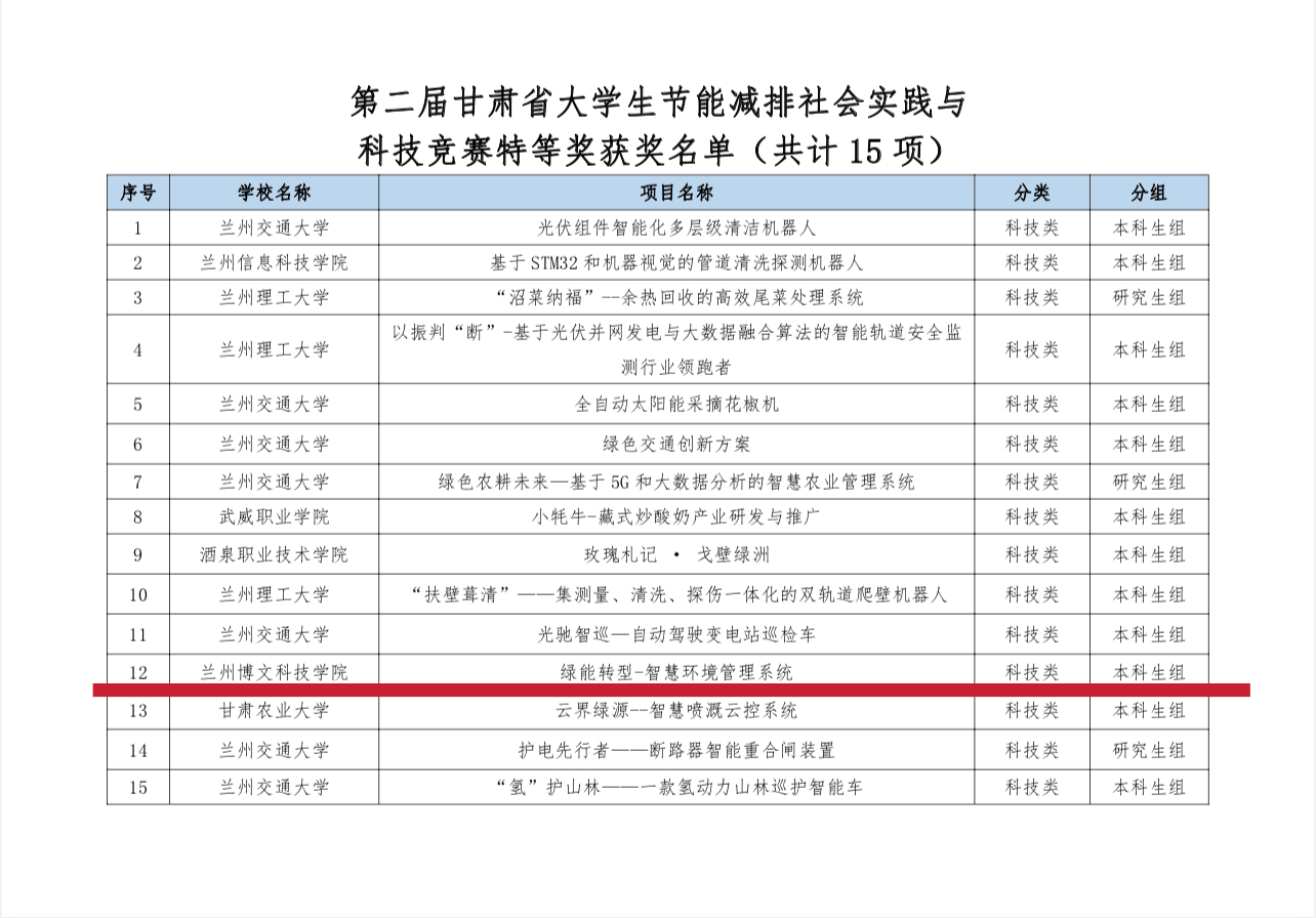 近日,第二届甘肃省大学生节能减排社会实践与科技竞赛圆满落幕。省内各高校踊跃参赛,竞争激烈。经过专家初评和现场答辩确定的获奖名单已公示,我院师生荣获各类奖项共7项,其中特等奖1项,一等奖1项,二等奖5项。