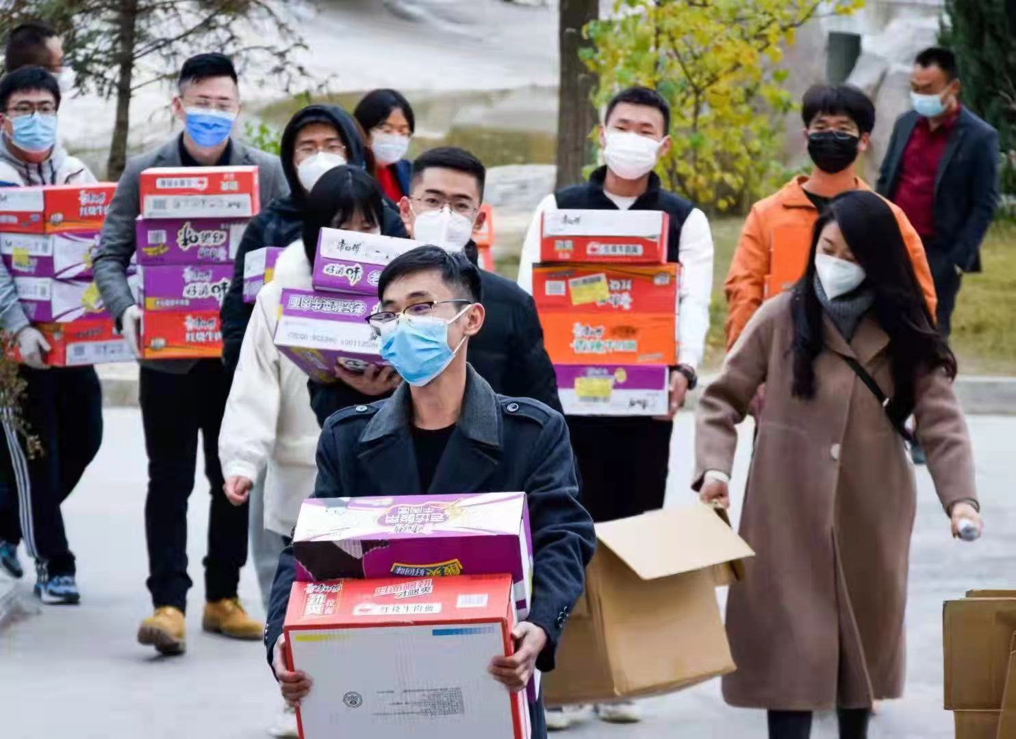 北校区被封控管理的八号楼女生公寓,成为了全校师生关注的焦点。在学校的组织下,八号楼公寓圆满的完成了三次核酸检测工作。在校领导的安排下,电信工程学院党总支副书记柴明喜组织全体党员及志愿者为八号公寓的本院学生发放泡面、矿泉水、面包等慰问物资。