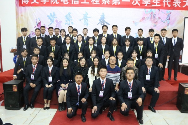 伴随着激昂的共青团团歌,大会正式拉开帷幕。在主持人一一介绍到场嘉宾后,由电信工程系学生管理副主任柴明喜致开幕词。他首先对上一届团学会成员的辛勤付出和尽心尽责的工作态度表达了真挚的感谢,其次表达了对新一届成员的殷切期望。