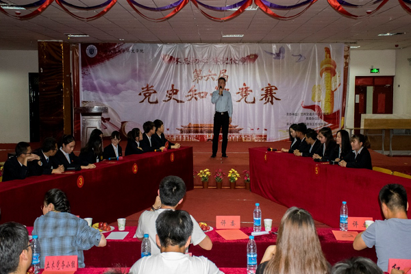 2018年5月24日晚,兰州交通大学博文学院由院党委办公室主办,思政政治工作宣传承办,以“回顾党史,感激党恩,精诚合作,奋勇拼搏”为主题的第六届党史知识竞赛于北校区体育馆301教室隆重举办。电信工程系由张震清作为领队,王艳、赵静红、李泽梅作为队员参加此次比赛,并且由抽签决定电信工程系与招就处组队迎战其他各系与组织。