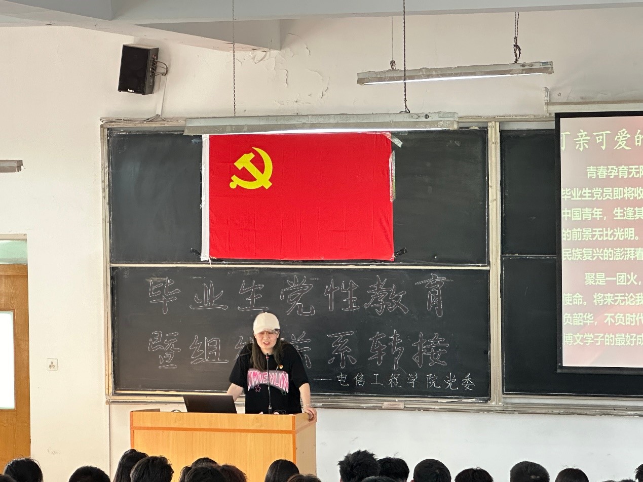 大会伊始,电信工程学院党委组织员陈富霞老师就毕业生党组织关系转接事项进行了安排部署。她强调,党组织关系转接是毕业生党员离校前至关重要的一项工作,希望全体党员能够理顺转接思路、明确时间节点,同时更要提高思想觉悟,重视操作规程,为组织关系转接及今后政治生活递交接力棒。同时,她祝愿毕业生党员在新的工作岗位上,能够迅速适应环境,积极进取,勇于创新,以实际行动展现共产党员的风采。随后由电信工程学院党员工作站部长武锦豪围绕“党员组织关系的内涵、重要性及如何转接”等内容进行了专题培训,并针对“党员组织关系(省内、省外)转接方法”、“组织关系转接过程中的沟通话术”展开了详细介绍和步骤演示,以确保每一位毕业生党员都能熟悉党组织关系转接的具体流程,与此同时,他还针对同学们在转接过程中所遇到的各种困惑难题进行耐心解答。大会结束后,毕业生党员们纷纷表示,将以此次大会为契机,进一步加强党性修养,严格按照组织程序进行关系转接,确保组织生活的连续性和稳定性。他们将带着母校的教诲和期望,踏上新征程,书写新的人生篇章。