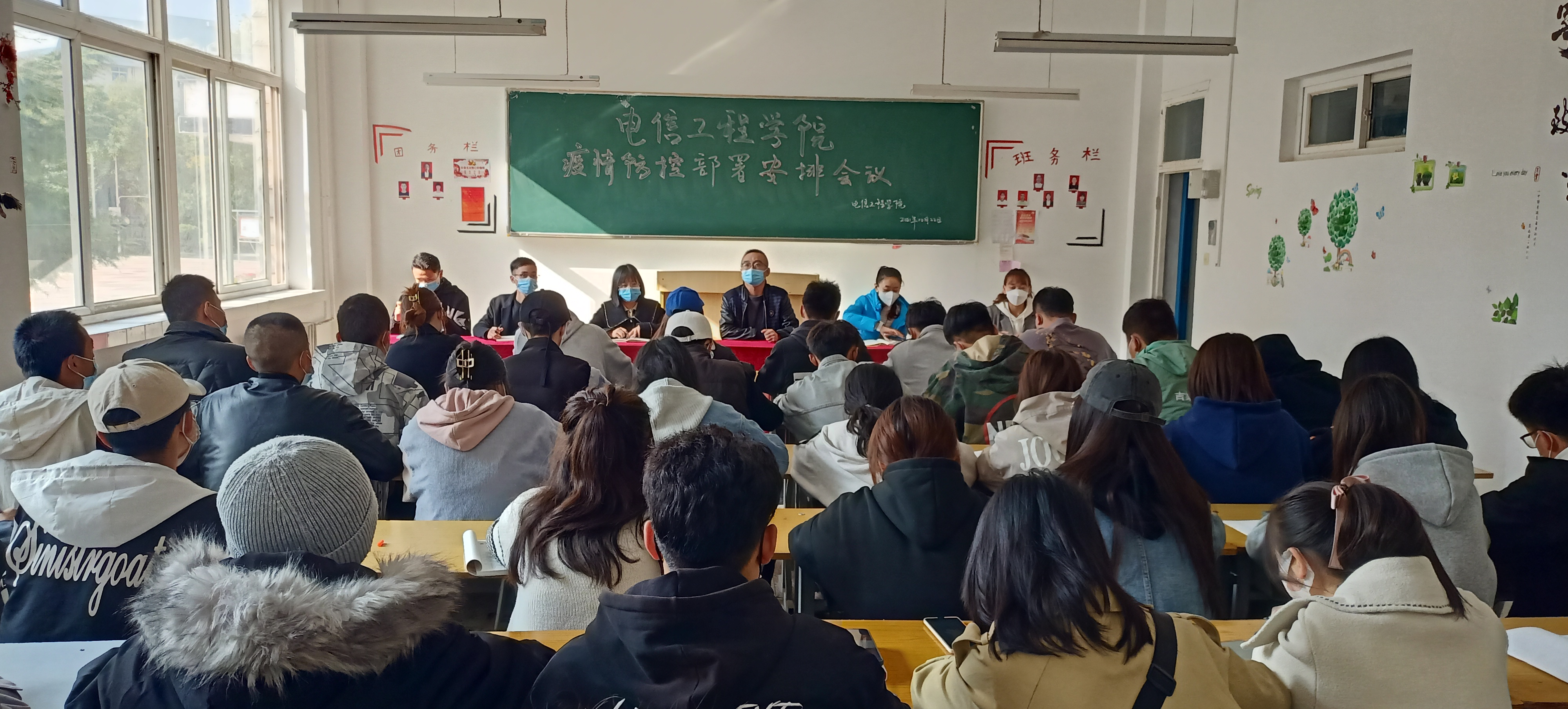 为认真贯彻中、省、市关于新型冠状病毒感染的肺炎疫情防控工作的部署要求,2021年10月21日bat365正版唯一官网电信工程学院在南校区教学楼1001召开了疫情防控部署安排会议,学生管理副院长柴明喜,辅导员以及全体团学干部成员参加此次会议。