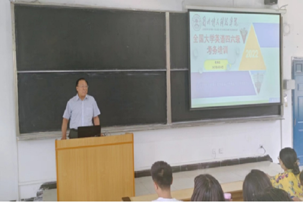 为贯彻甘肃省考试院《关于做好2022年上半年甘肃省全国大学英语四、六级考试考务工作的通知》、《关于进一步加强2022年上半年甘肃省全国大学英语四、六级考试手机管理工作的紧急通知》文件精神,积极响应我校《关于2022年上半年全国大学英语四、六级考试安排的通知》文件要求,加大监考人员培训及管理力度,6月10日中午,学校在西T1和西T2同时进行了全国大学英语四、六级考务培训,校长陈彪、党委书记阳红、副校长王芬琴、教务处处长郭斌及300余名监考人员参加了此次培训会议。