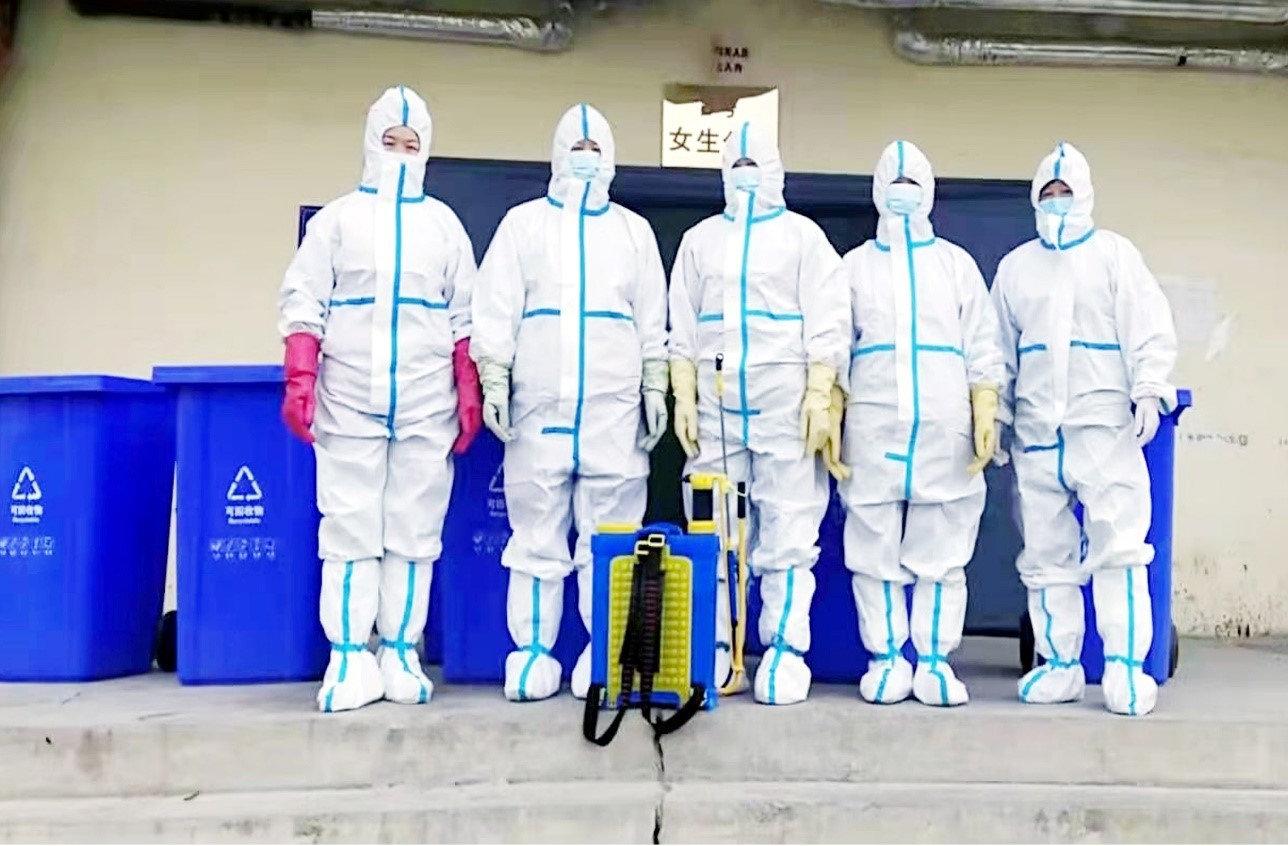 10月27日凌晨,和平镇道路进入了全面封闭状态。大清早,保洁公司主管马小兰就冲到后勤处办公室:“张处长,我们34名保洁员被封在村里了,只有8人在岗,卫生清扫可咋办呀?急死我了”。张宏亮处长不假思索后,立即拨通了甘肃鸿庆保洁服务有限公司董事长的电话,讲明情况后,希望公司对在岗的8名保洁员能尽快出台鼓励政策,给予动力支持,全力以赴做好卫生清扫及日常消杀工作。半个月以来,这8名保洁员需要每天清运12000余名师生产生的垃圾350余桶,尽管工作量成倍增加,但保洁员以坚强的意志和顽强的毅力坚持每天开展工作,以不怕苦能吃苦的“老黄牛”精神为疫情防控奉献力量。