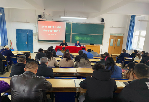 3409:00时,我院召开2020-2021学年第二学期学生管理干部第一次工作会议。副院长刘德光、学生处处长刘炳田、学生处副处长刘秀星、院团委书记王俊鹏、学生处副处长牛勃烜、各系主管学生工作副主任、全体辅导员及学生管理干部参加了会议。会议由刘炳田处长主持。