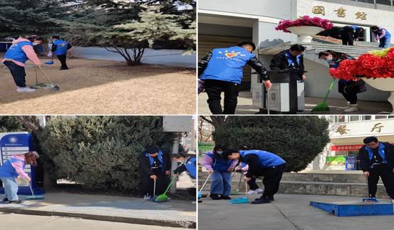 “雷锋精神人人传,校园环境处处新”志愿者们打扫校园卫生,为接下来还没到校学生营造一个温暖舒心的校园环境。