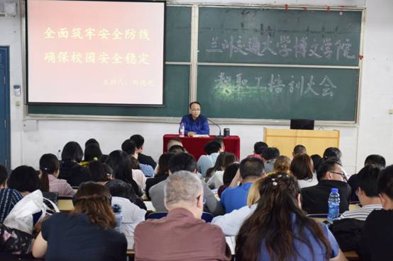 2019年4月26日下午,我院在教学楼东T2顺利召开了本学期第二期教职工培训大会。学院副院长刘德光出席会议并以“全面筑牢安全防线,确保校园安全稳定”为主题做了培训,学院各系部主管学生的副主任、班主任以及辅导员参加会议,人事处处长王定科主持会议。