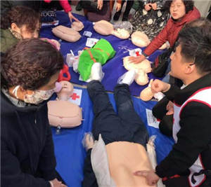 随后,志愿者们在活动现场为过往行人发放急救包及相关手册等,并现场演示伤口包扎、心肺复苏等急救方法。