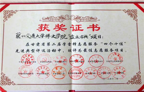 在第二届学雷锋志愿服务“四个十佳”先进典型表彰活动现场,我院红十字志愿服务队“益本字典”项目荣获最佳志愿服务项目。该项目是我院红十字志愿服务队在长期的支教服务活动中探索建立的微公益志愿服务项目,以提高山区儿童认字、识字能力为出发点,通过废品收集换购,网络公益众筹等方式筹集字典,解决缺乏字典类工具书学生普遍不能熟练应用字典的问题,从而提高留守儿童的语言文字能力。我院红十字志愿服务队于2012年在豆家山小学和菜籽山小学支教基地创立“益本字典”项目。
