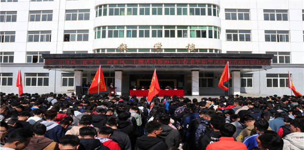 2019年3月14日中午,我院在南校区教学楼前广场举行“正班风,促学风,树新风”主题活动暨2019年春季学期学风建设活动启动仪式。学院副院长刘德光、学生处处长刘炳田、副处长刘秀星、各系学生管理副主任和辅导员、班主任及2000余名学生代表参加了启动仪式。会议由学生处副处长张宏亮主持。