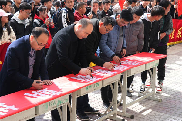 学生代表李应浩同学宣读了学风建设倡议书,鼓励全体学生将学风建设融入到大学学习和生活的具体实践中,积极弘扬“博衍明德,文倡格物”的博文精神,努力学习,顽强拼搏。随后,参加启动仪式的师生代表在学风建设活动宣传横幅上签名。
