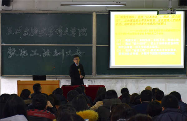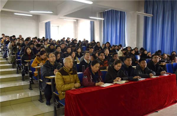 20181227日下午,我院在教学楼西T3顺利召开了本学期第四期教职工培训大会。学院副院长胡彦奎出席会议并以“以‘四有’好老师标准统领师德建设——努力做一名温暖的大学教师”为主题做了培训,人事处处长王定科主持会议,学院教务处及教学部门全体人员参加会议。