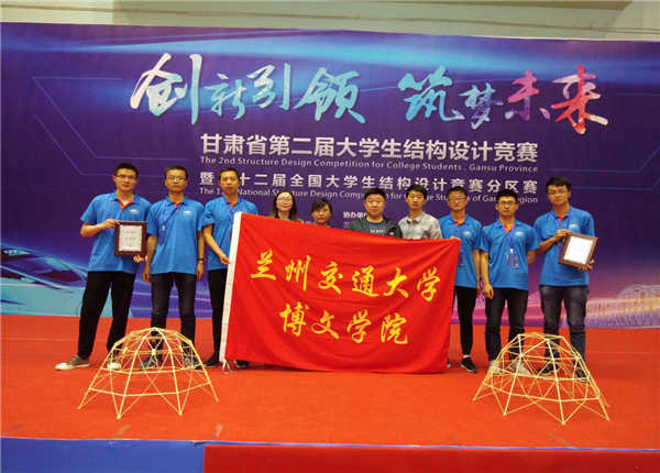2018年6月1日-4日,由甘肃省教育厅、甘肃省土木建筑学会主办的甘肃省第二届大学生结构设计竞赛暨第十二届全国大学结构设计竞赛分区赛在兰州交通大学举行。此次大赛以“创新引领,筑梦未来”为主题,共有来自兰州大学、兰州理工大学、兰州交通大学、兰州交通大学博文学院等11所高校的24支代表队的131名师生同台竞技。 经过为期三天的激烈角逐,由我院土木工程系张鹤老师指导的孙学文、赵小强、邸兴奎组成的博文学院第二代表队,他们的作品《简约之美》荣获甘肃省二等奖。由我院土木工程系陈亚琴老师指导的李勇磊、罗文亮、李红伟组成的博文学院第一代表队,他们的作品《结构之妙》获得甘肃省三等奖。参赛学生进行模型制作