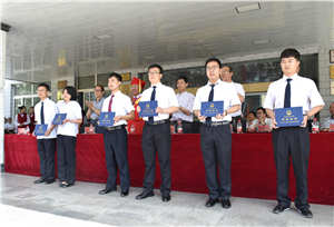 在欢快的音乐声中,院领导为毕业生代表颁发了毕业证书、学位证书、优秀毕业生荣誉证书,并为考取硕士研究生的同学颁发了奖金,并与毕业生代表进行了合影留念。