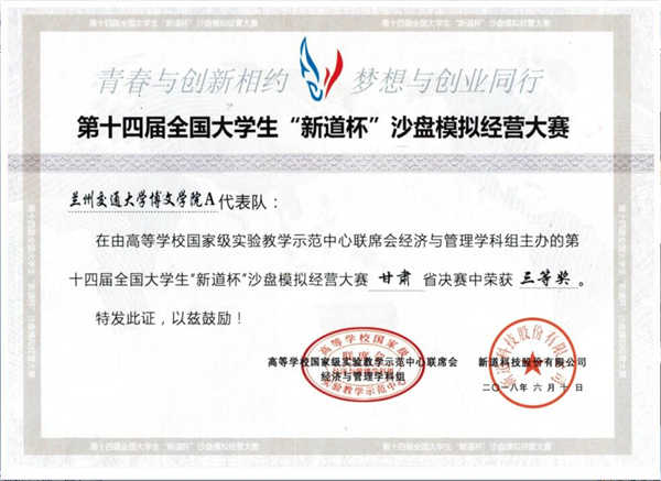 2018年6月10日,由高等学校国家级实验教学示范中心联席会和中国职业技术教育学会专业委员会主办,新道科技股份有限公司承办的第十四届“新道杯”沙盘模拟大赛暨第四届甘肃省ERP大赛网络赛正式开赛。