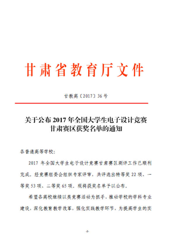 我院代表队在2017全国大学生电子设计竞赛中荣获甘肃赛区二等奖。在竞赛中,电信工程系三名学生的专业知识能力得到了专家组充分的肯定,同时也为他们在今后的学习中起到了指导作用。通过此次大赛,充分体现了我院学生具有良好的创新意识和创新精神,夯实了他们的实践动手能力,为创新型人才的培养起到了引领作用。祝愿我院学生紧跟时代步伐,将理论知识转化为实践应用,准确把握新一轮实践创新的趋势和机遇!