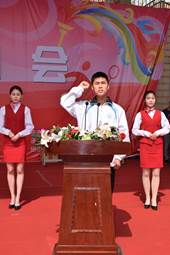 陈彪院长代表学院和运动会组委会致辞:学院举办这届运动会,是全面推进素质教育,实施阳光体育工程的一项重要举措,更是师生欢聚、增进交流、公平竞争、团结拼搏的一个良好平台,希望全体运动员能够拼出成绩,赛出风格,取得优异成绩。随后,运动员和裁判员代表也向全院师生庄严宣誓。