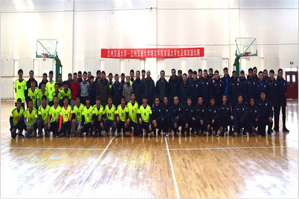 2016年12月31日上午9:30,兰州交通大学——兰州交通大学博文学院首届大学生足球友谊比赛在我院体育馆隆重召开。出席开幕式的兰州交通大学领导有党委(校长)办公室刘欣副主任、体育运动委员会副主任贠虹、体育部主任乔梁、体育部副主任张正红,体育部副主任张连、教练员藏谷钰龙。参加开幕式的我院领导有刘彦凯副院长、办公室负责人郑建平、学生处处长刘炳田、体育部主任黄丽、体育部副主任郑寅、体育部副主任王国萧、教练员刘庆大。开幕式由刘炳田处长主持。