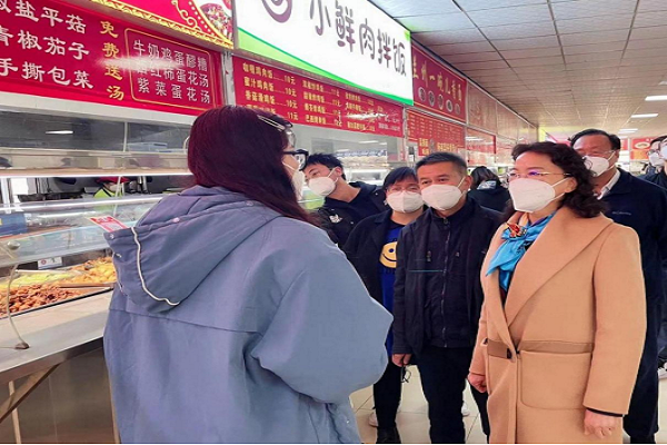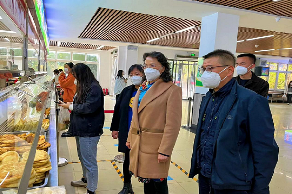 陈玲一行实地查看了南北校区各行政部门、公寓、超市等区域疫情防控人员配备和工作开展情况,详细了解当前工作中存在的困难和问题。陈玲指出,我们要进一步提高防范意识,严格执行防疫措施,切实维护广大师生的身体健康和校园安全稳定,力争早日战胜疫情。