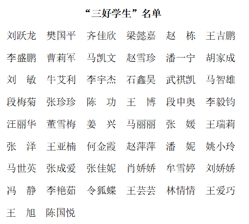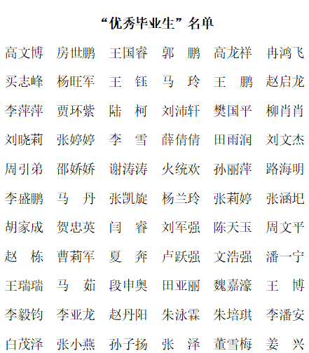 经个人申请、班级民主评议、学院推荐,学生处、教务处、体育部核查,学校学生评优工作委员会对入选学生进行审定,与会人员讨论研究,最终评选出省级“三好学生”推荐人选50名、评选出省级“优秀毕业生”推荐人选88人。现将名单予以公示: