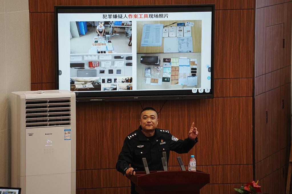 会上,陈冠宇警官围绕在校大学生的人身安全、财物安全和防诈骗、防传销、防“套路贷”等方面,为参会的师生开展了一次生动详实的反诈骗安全知识讲解。他通过真实案例全方位系统归纳犯罪分子常用的诈骗方式和手段,分析受害者上当受骗的原因,并讲解各种防范对策及被骗后的补救措施,教育同学们在生活中做到不轻信、不转账、不上当,帮助大家进一步“擦亮双眼”,切实提升防诈骗能力更好地保护自己的财产安全。