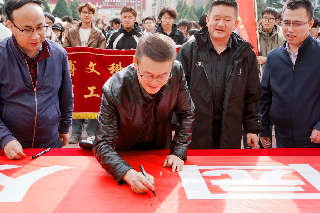 参加启动仪式上,校领导为我校“控烟监督员”代表颁授臂章,要求“控烟监督员”做好禁烟督查工作,监督校园禁烟工作的有序开展。随后,教职工代表、各学院学生代表在校园控烟禁烟条幅上签名。