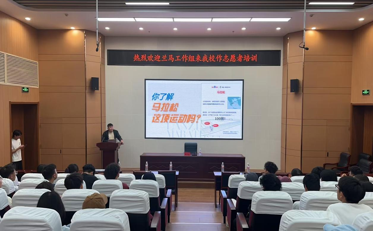 “志愿助兰马 服务显青春”。 为全力做好兰州马拉松志愿保障工作,提升马拉松志愿者的专业素养和服务水平,5月16日,兰州马拉松工作组袁书康老师受邀来校做专题培训。