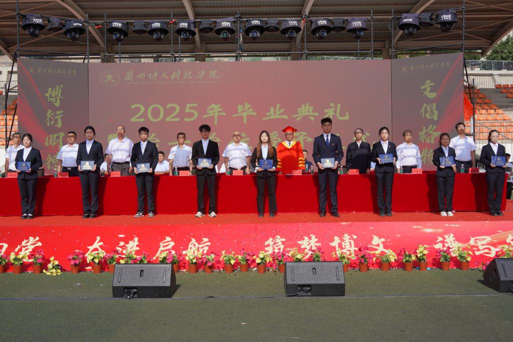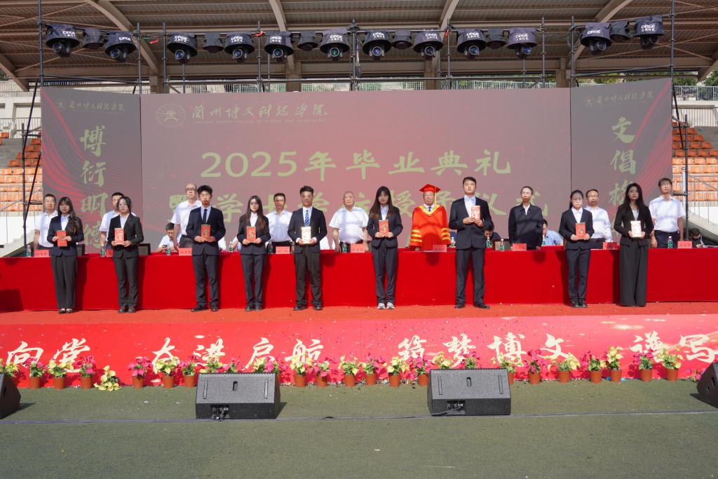 校领导们依次为2025届毕业生颁发毕业证书,为考取硕士研究生的学生颁发奖金。
