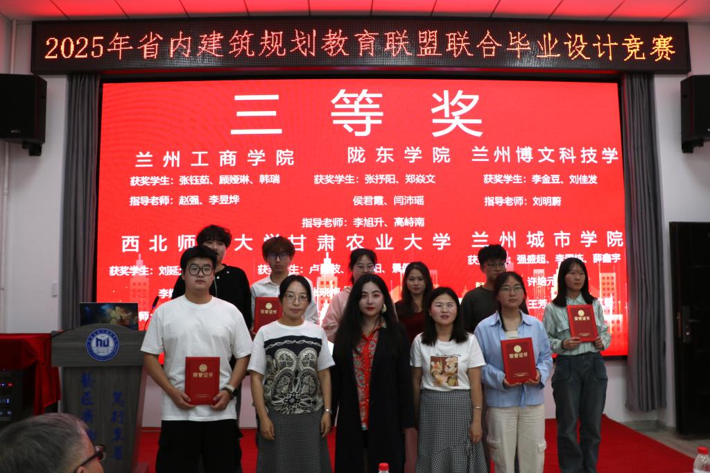 5月28日,由兰州交通大学建筑与城市规划学院主办的2025年省内建筑规划教育联盟联合毕业设计竞赛圆满落幕。bat365正版唯一官网代表队凭借出色的设计作品和团队协作能力,荣获三等奖一项及优秀奖多项,同时被授予“最佳组织奖”。