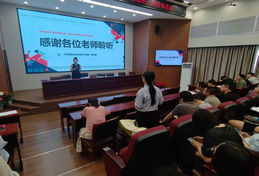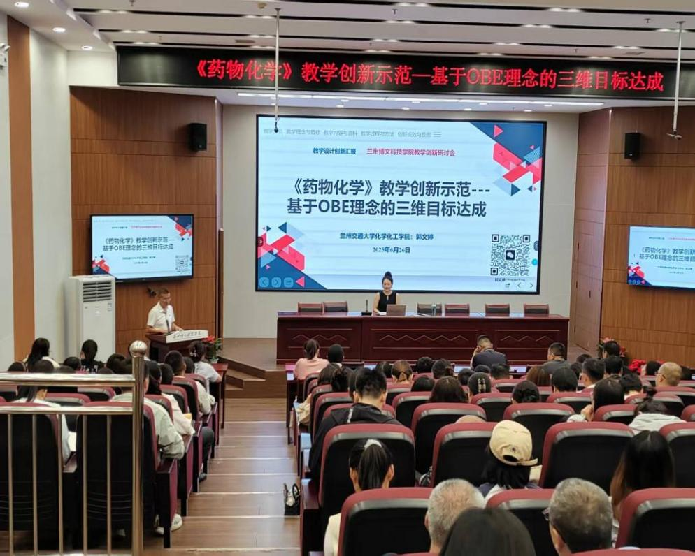 6月26日下午,兰州交通大学化学化工学院郭文婷博士于综合教学楼12楼大报告厅开展了题为“《药物化学》教学创新示范—基于OBE理念的三维目标达成”的专题讲座。本次讲座由副校长谢黎明主持,来自12个教学单位的近200名教师参加了此次讲座。