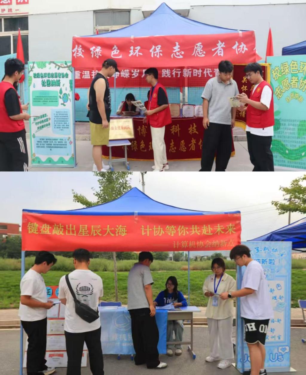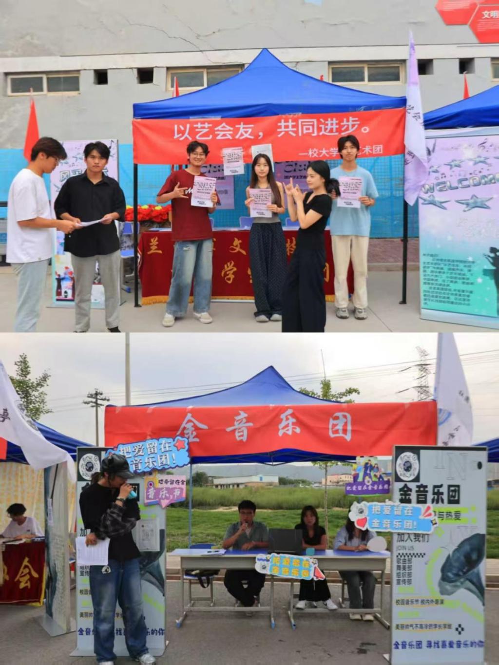 在秋日暖阳的照耀下,各社团精心布置的展位各具特色。鲜明醒目的宣传海报吸引着人们的目光,丰富的才艺展示更是轮番上演,迅速吸引了大批新生驻足咨询、了解详情。现场秩序井然,洋溢着浓厚的青春氛围。