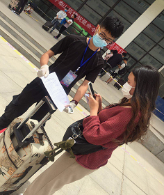 当天早上,学生返校各项工作全部准备就绪,工作人员与志愿者各就各位,现场井然有序,炎炎烈日下,校门口格外忙碌,工作人员引导同学们保持距离,有序排队,并对学生行李集中消毒。同学们依次出示学生证、身份证和提交健康码。