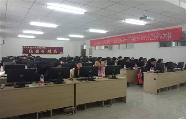 大赛伊始,宋国军副主任致开幕词,他指出,博文学院在ERP领域的发展相较于其他院校起步较晚,但经过几年发展,自身水平一直在不断的努力提高。非常感谢陇桥学院的同学能够参加本次大赛,只有加强交流学习,才能更快的取得进步!希望两校同学能够通过本次大赛建立深厚的友谊,加强交流,提高沙盘操作水平。在宣布比赛规则后,比赛正式开始。此次大赛以商战电子沙盘为竞赛平台,参赛学生通过创业设计和模拟供应链企业管理信息化经营的形式,体验企业间的竞争,熟悉生产制造、渠道建设、订单争取等多个环节的运营模拟,以提高学生的创新能力和创业能力。比赛过程中,选手们都全新投入到比赛中,各队经营的企业相互拼搏竞争,力争上游,但比赛终究是激烈而残酷的,不断有队伍宣布破产,最后评委根据各队得分选出了获奖人。