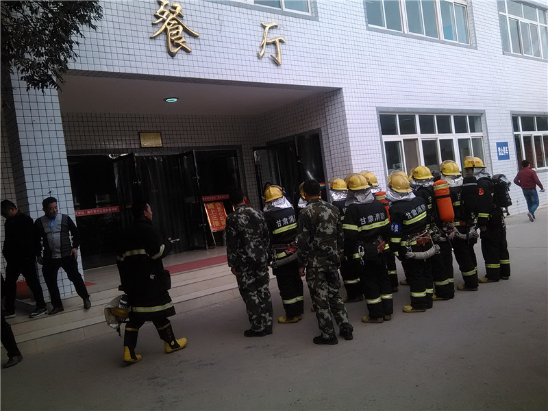 2015年10月13日早,榆中县消防大队来我院进行消防演练。在5号公寓、培训中心、图书馆、餐厅分别进行了火情侦查、人员疏散、应急灭火、营救伤员等项目。