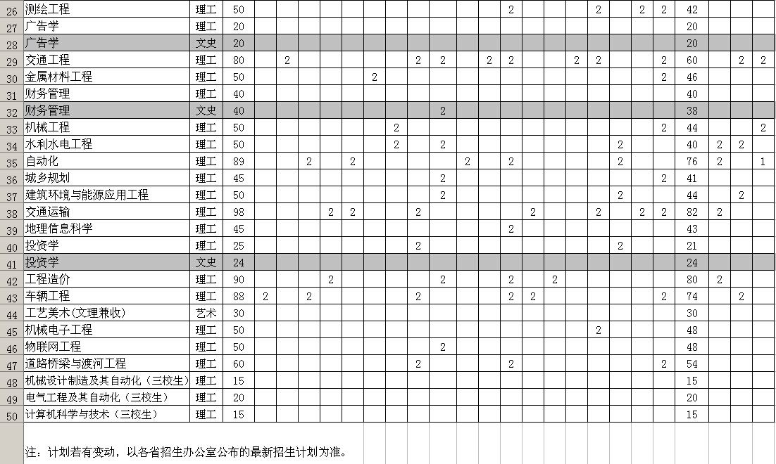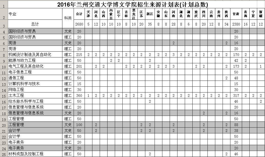 【招生计划】2016年兰州交通大学博文学院招生来源计划表(计划总数)