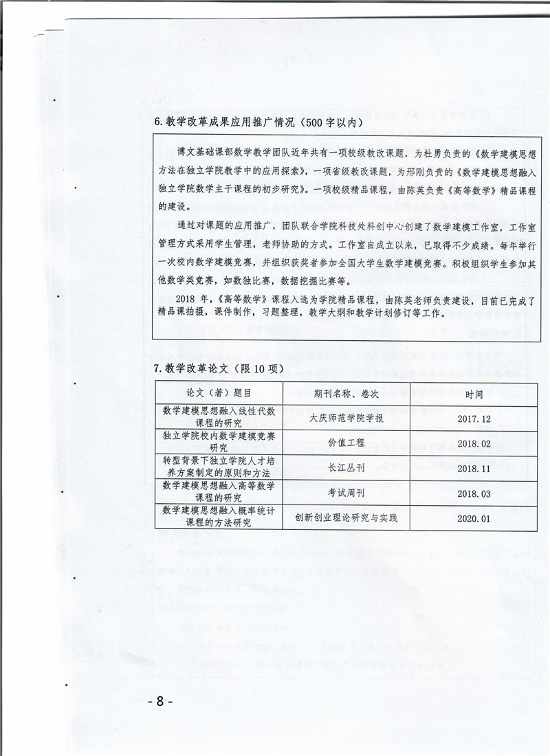 本科教学质量提高项目