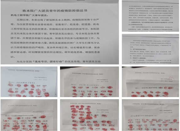 自疫情开始以来,机电工程学院党总支书记,院长苗莉;团总支书记,学生管理副院长任建文带头深入到疫情防控一线;积极协调,统一指挥,并组织动员本院广大师生党员,青年团员积极参与到疫情防控志愿者队伍当中。同时召开辅导员,班主任工作会议,积极了解本院学生的心理状况,了解学生的困难。充分利用QQ,微信,腾讯会议等通讯软件,利用网络平台召开会议,部署相关防疫工作,为本院师生排忧解难。为打赢本次疫情防控阻击战,遭遇战打下了坚实的基础,提供了强有力的保障。