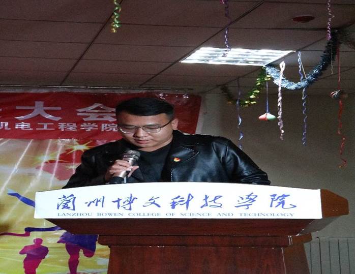 机电工程学院团总支副书记、第十八届团总支学生会主席田彦德向本次大会做过去一学年的团学会工作汇报