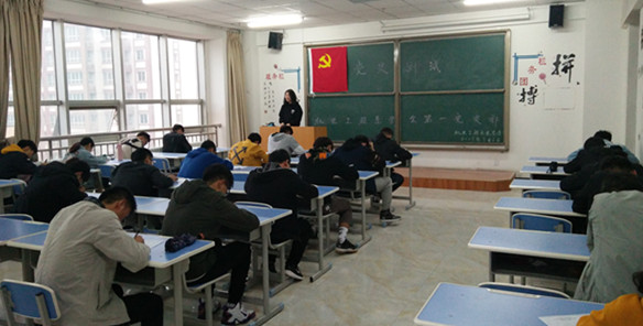 为了规范党员的政治行为、对党有更深一步的认识及了解,督促党员深入学习党务知识,提高党员的思想觉悟,保持创先争优的意识。机电工程系党总支于2019年5月6日以“我为党旗添光彩,心中永驻中国魂”为主题的党史知识测试活动在综合楼808、809、810教室进行。