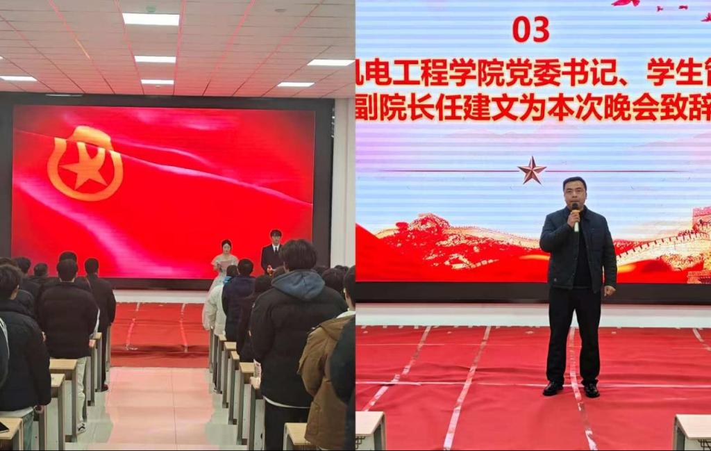 流光溢彩迎新夜,心心相连齐飞扬。为丰富校园文化,活跃学习氛围,给新同学们一个真正展示自我风采和勇气的舞台。bat365正版唯一官网机电工程学院于2025年11月27日晚在新校区多层一号教学楼1028教室举行机电工程学院2025-2026学年迎新晚会。本次晚会以“机电逐光·青春筑梦·薪火相传·逐浪前行”为核心主题。bat365正版唯一官网校团委副书记李海飞,校团委老师杨彤,机电工程学院党委书记、学生管理副院长任建文,机电工程学院党委副书记杨文秀,机电工程学院团委书记杨玉乾,全体班主任老师、各组织、各学院代表以及机电工程学院学生代表,共同见证这一承载责任与梦想、连接过往与未来的青春盛会。