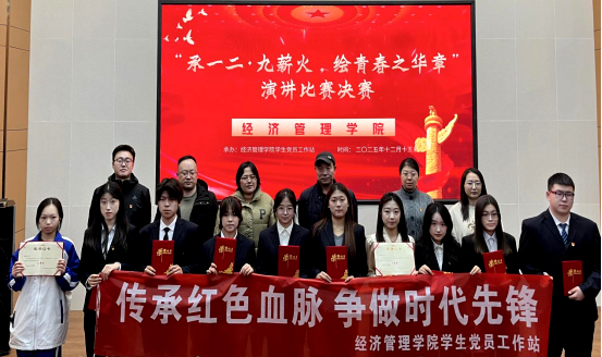 本次比赛从演讲内容、语言表达、台风仪态、现场感染力等多个维度进行综合打分。经过激烈角逐,最终评选出一等奖1名、二等奖3名、三等奖6名。比赛尾声,经济管理学院学生管理副院长刘炳田作总结讲话。他指出,“一二·九”运动承载着一代青年的热血与担当,是镌刻在中华民族史册上的光辉印记,新时代青年生逢盛世,肩负重任,要铭记历史、不忘来路,将满腔的爱国情、坚定的强国志、扎实的报国行融入日常学习与工作中,以青春之我、奋斗之我,为经济管理学院发展和国家建设贡献青春力量。最后,评委老师为获奖选手颁奖并合影留念,鼓励他们再接再厉,争做传承红色精神的表率。