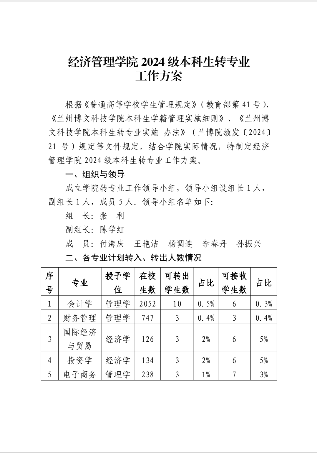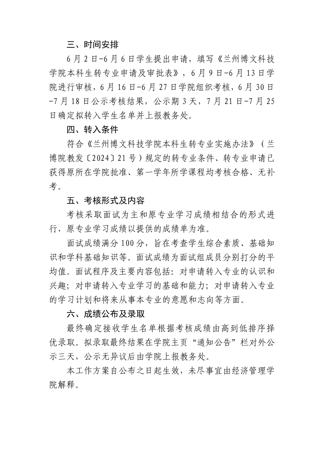 经济管理学院2024级本科生转专业工作方案