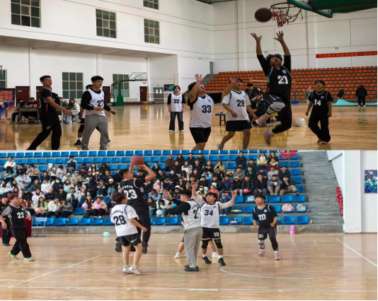 随着副院长刘炳田宣布比赛正式开始,双方队员迅速进入竞技状态。他们传球精准利落,运球灵动娴熟,每一个动作都彰显着青春的活力与拼搏的精神。运动员们矫健的身姿在篮球场上不停穿梭,晶莹的汗水在阳光下肆意挥洒。场下观众的呐喊声、助威声此起彼伏,将现场热烈的气氛一次次推向高潮。经过一番紧张激烈的角逐,本次比赛成功决出冠军队伍。比赛结束后,学院领导为获奖队伍颁发奖杯与荣誉证书,并与全体参赛队员合影留念。